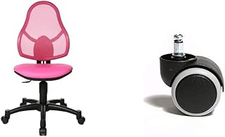Topstar Open Art Junior, Bürostuhl, Schreibtischstuhl für Kinder und Jugendliche, Bezugsstoff, pink & 6991 Rollenset, Hartbodenrollen für Bürostuhl, Rollenset = 5 Rollen für Schreibtischstuhl, schwarz