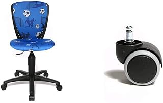 Topstar S'cool 3, Kinderdrehstuhl, Schreibtischstuhl für Kinder, Bezugsstoff blau, Motiv Fußball & 6991 Rollenset, Hartbodenrollen für Bürostuhl, Rollenset = 5 Rollen für Schreibtischstuhl, schwarz