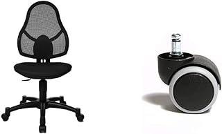 Topstar 71487S12 Titan Junior, Schreibtischstuhl, Netzrückenlehne, Bezugsstoff Anthrazit & 6991 Rollenset, Hartbodenrollen für Bürostuhl, Rollenset = 5 Rollen für Schreibtischstuhl, schwarz