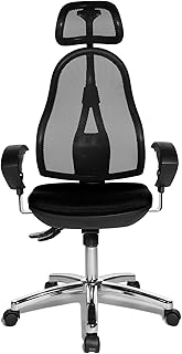 Topstar OP290UG20X Open Point SY Bürostuhl, Schreibtischstuhl, Syncro-Bandscheiben-Drehstuhl, inkl. höhenverstellbare Armlehnen und Kopfstütze, Bezugsstoff schwarz