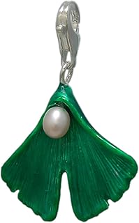 Damen-Charm Anhänger Ginkgoblatt mit Perle 925 Sterling Silber 1800261
