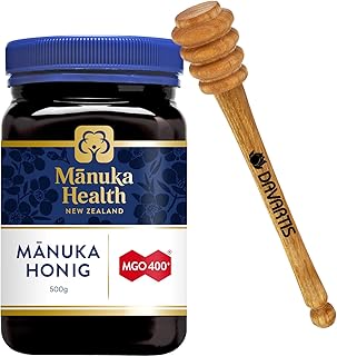 2x Manuka Health Manuka Honig MGO 400+ [500g] 100% Pur aus Neuseeland mit zertifiziertem Methylglyoxal Gehalt + 1x Davartis Honiglöffel aus Kirschholz 15cm