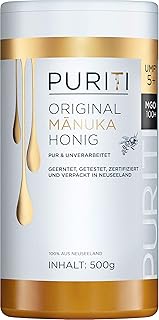PURITI Manuka Honig MGO 100+ 500g aus Neuseeland mit zertifiziertem Methylglyoxal Gehalt - Laborgeprüft, Direktimport, reines Naturprodukt, frei von Zusatzstoffen