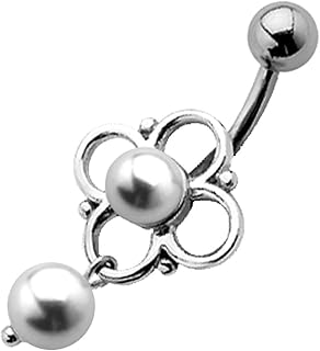 Bauchnabel Piercing Schmuck Silber Motiv Blüte mit 2 Perlen