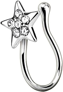 Fake Piercing Hoop Ring Clip on Klemmring Stern mit Kristall für Septum Tragus Helix Nase Lippe Ohr Intim Nippel Hufeisen Brust