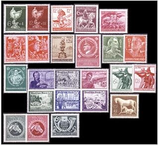 Der Briefmarken-Jahrgang 1944 der Deutschen Reichspost umfasste 42 Sondermarken, die alle mit einem Zuschlag versehen waren. In der Dauermarkenserie Reichskanzler Adolf Hitler erschien die letzte Marke zu 42 Reichspfennig. Es gibt keine verlässlichen Angaben zu der Auflagenhöhe der Briefmarken. Kriegsbedingt entschloss sich das Reichspostministerium, dass alle Briefmarken bis auf weiteres ihre Gültigkeit[1] behalten. Somit waren die Briefmarken bis zur Kapitulation im Mai 1945 gültig Der Briefmarken-Jahrgang 1944 der Deutschen Reichspost umfasste 42 Sondermarken, die alle mit einem Zuschlag versehen waren. In der Dauermarkenserie Reichskanzler Adolf Hitler erschien die letzte Marke zu 42 Reichspfennig. Es gibt keine verlässlichen Angaben zu der Auflagenhöhe der Briefmarken. Kriegsbedingt entschloss sich das Reichspostministerium, dass alle Briefmarken bis auf weiteres ihre Gültigkeit behalten. Somit waren die Briefmarken bis zur Kapitulation im Mai 1945