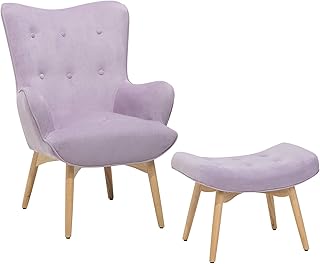 Beliani Sessel Samtstoff rosa Plus Hocker VEJLE
