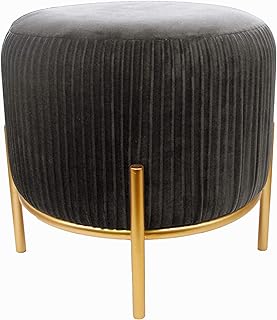 Zedelmaier Runder Sitzhocker Schminktisch Hocker Ottoman Gepolsterter Hocker Metallstütze Grau