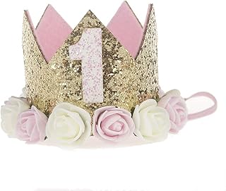 BOSONER Baby Prinzessin Krone 1" Tiara Kinder Erster Geburtstag Hut Sparkle Gold Flower Design