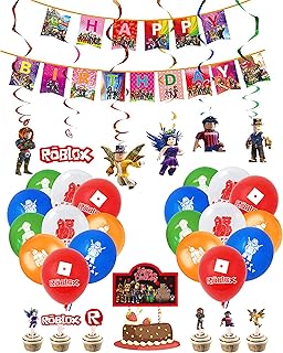 smileh Roblox Geburtstag Deko Luftballons Alles Gute Zum Geburtstag Banner Kuchendeko Deckenwirbel Dekorationen für Spielliebhaber Geburtstag