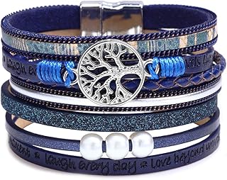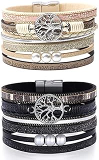 Damen Wickelarmband Multilayer Armband Boho Lederarmband mit Perlen Lebensbaum Magnetverschluss für Frauen Mädchen