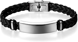 Schmuck Personalisiert Gravur Geflochten Leder Armband Armreif mit Edelstahl-Schild Lederarmband für Herren Damen