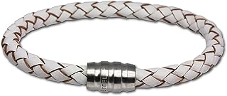 Lederarmband geflochten 5mm weiß 19cm mit Edelstahl Magnet Verschluss für Damen oder Herren Leder Armband Echtleder LS1521