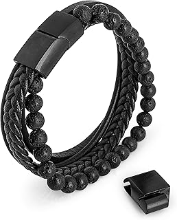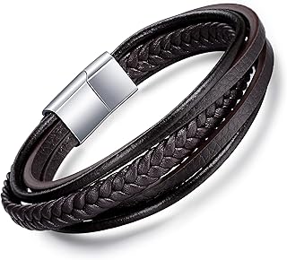 Herren Armband Echtleder Armbänder Geflochten Magnetverschluss aus Edelstahl für Männer mit Geschenkpackung