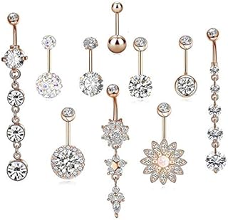 5-8 Stück Edelstahl Zirkon Bauchnabel Bauchnabelpiercing Bauch Piercing Nabelring Schmuck für Damen