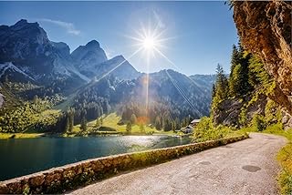 Berge See Schnee Gebirge Natur XXL Wandbild Kunstdruck Foto Poster P0911 Größe 120 cm x 80 cm