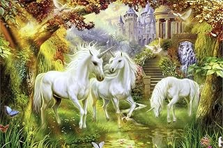 Einhorn im Paradies Fabelwesen Schloss XXL Wandbild Kunstdruck Foto Poster P0466 Größe 90 cm x 60 cm, Größe 90 cm x 60 cm