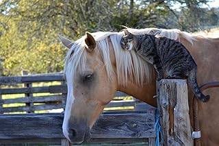 Pferd mit Katze am Schmusen Pferde XXL Wandbild Kunstdruck Foto Poster P0468 Größe 90 cm x 60 cm, Größe 90 cm x 60 cm