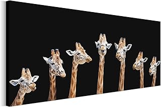 Revolio 90x30 cm Panorama Bilder Leinwandbild Wandbilder Wohnzimmer Modern Kunstdruck Design Wanddekoration Deko Bild auf Leinwand 1 Teilig - Giraffen Tiere schwarz braun