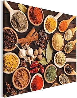 Revolio 40x30 cm Leinwandbild Wandbilder Wohnzimmer Modern Kunstdruck Design Wanddekoration Deko Bild auf Leinwand Bilder 1 Teilig - Gewürze Schüsseln bunt Mehrfarbig orange