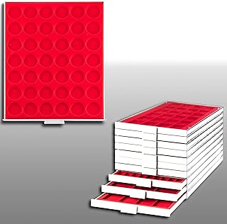 Star Collect (700067 Münzbox - 35 Münz-Fächer für 2€ Münzen - samtartige rote Einlage für 26 mm Münzkapseln