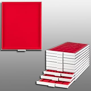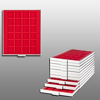 Prophila Münzboxen Stapel-Münzbox mit glasklarem Kunststoff-Rahmen, hellgrauem Kunststoff-Einschub (Schublade) und einer roten oder blauen Samteinlage mit rechteckigen oder runden Vertiefungen. Beliebig stapel-, erweiter- und kombinierbar - auch mit den wichtigsten vergleichbaren Produkten am Markt. Format: 23,7 x 2,2 x 30,3 cm (BHT). Prophila Münzboxen Stapel-Münzbox mit glasklarem Kunststoff-Rahmen, hellgrauem Kunststoff-Einschub (Schublade) und einer roten oder blauen Samteinlage mit rechteckigen oder runden Vertiefungen. Beliebig stapel-, erweiter- und kombinierbar - auch mit den wichtigsten vergleichbaren Produkten am Markt. Format: 23,7 x 2,2 x 30,3 cm (BHT).