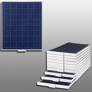 Prophila Münzbox grau 45 eckige Fächer gemischt 4 Verschiedene Größen, Blaue Einlage