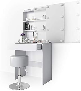 Vicco Schminktisch Nora weiß Spiegel Frisiertisch Frisierkommode mit Schublade (+Hocker & Lampen)
