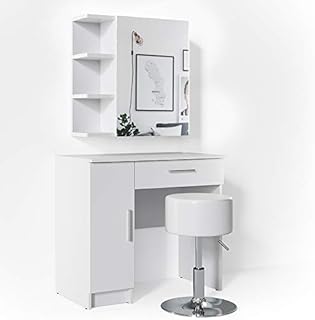 Vicco Eckschminktisch Frisiertisch Frisierkommode Sofia Weiß mit Spiegel Ablagen (Schminktisch + LED + Hocker)
