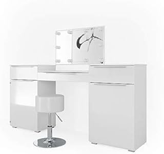 Vicco LED Schminktisch Azur Frisiertisch Kommode Weiß Hochglanz Frisierkommode Schminkkommode mit Hocker Spiegel und LED Beleuchtung