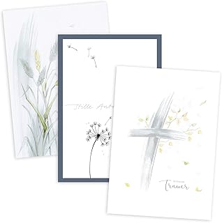12er Set einfühlsame Premium-Trauerkarten/Beileidskarten mit Umschlag. Trauerkarte Beileidskarte mit Spruch (Doppelkarten/Klappkarten mit Briefumschlag)