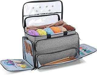 Yarwo Häkelgarn Tasche, Tragetasche für Stricken Wolle und Häkel Zubehör, Handarbeitstasche für Häkelnadeln, Unfertige Projekt und Stricken Garn, Schaf