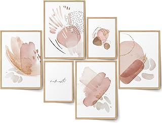 BLCKART Infinity Abstract Shapes Blossom Splash Bilder Set Stilvolle Beidseitige Abstrakte Poster Brush Wohnzimmer Deko (L | 4x A3 | 2x A4 | Holzrahmen (natur), ABSTRACT SHAPES | Blossom Splash)