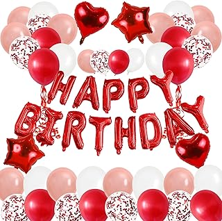 Geburtstagsdeko Luftballons, 55 Stück Rot Rosegold Luftballons Geburtstag mit HAPPY BIRTHDAY Banner Confetti Ballon für Jungen Mädchen Kinder, Helium Ballon Konfetti Latex Geburtstag Ballons