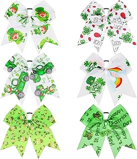 6 Stücke St. Patrick's Day Haarschleifen Haargummis 6 x 4 Zoll Irisch Day Kleeblatt Haarband Pferdeschwanz Halter Handgemacht Haarschmuck zum St. Patrick's Day Party Mädchen Frisur Dekoration
