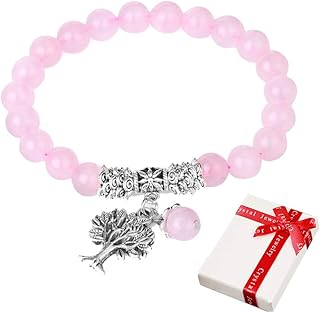 Baum des Lebens Rosenquarz Armband für Damen Frauen Herren ,8mm Edelstein Mode-Schmuck Rosa Natürliche Heilung Kristall Echte Stein Bead Birthstone Stretch Armbänder mit Lebensbaum Anhänger für Yoga