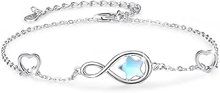 Infinity Armband Silber 925 Mondstein Armkette für Damen Verstellbares Stern Armband Mondstein Schmuck Mädchen Weihnachts Geschenk für Frauen Ehefrau Mama Kinder