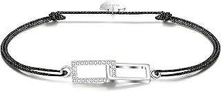 Armband Damen mit 925 Silber - Rechteckige Doppelschnalle Handgewebtes Armbänder für Frauen & Mädchen - Einstellbare Armkettchen Geschenk für Freunde und Familie(Schwarz)