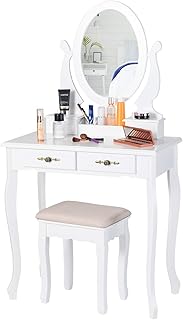 Dripex Schminktisch Weiß mit Hocker Spiegel Frisiertisch Kosmetiktisch, 4 Schubladen und Fächern
